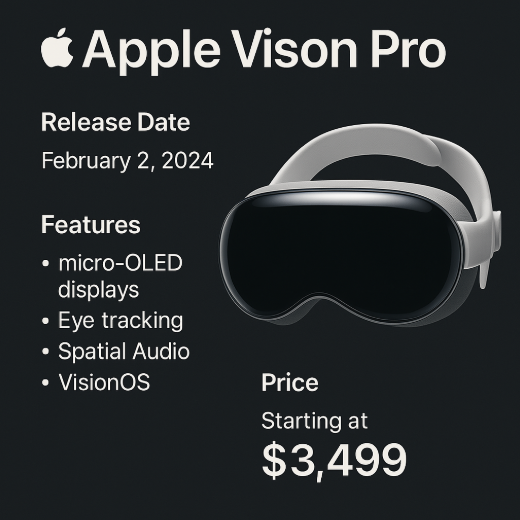 Apple Vision Pro는 2024년 6월 미국에서 처음 출시되었으며, 2025년부터 한국을 포함한 아시아 및 유럽 주요 국가에 순차적으로 출시되고 있습니다. 초기에는 예약 구매 중심으로 판매되었고, 한정 수량으로 인해 높은 관심을 모았습니다.