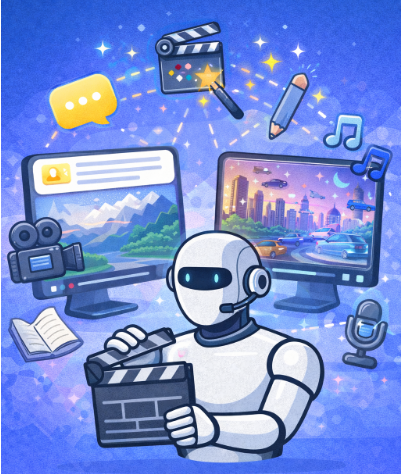 인공지능이 자동으로 영상 장면, 움직임, 카메라 워크, 분위기까지 생성하는 기술입니다.